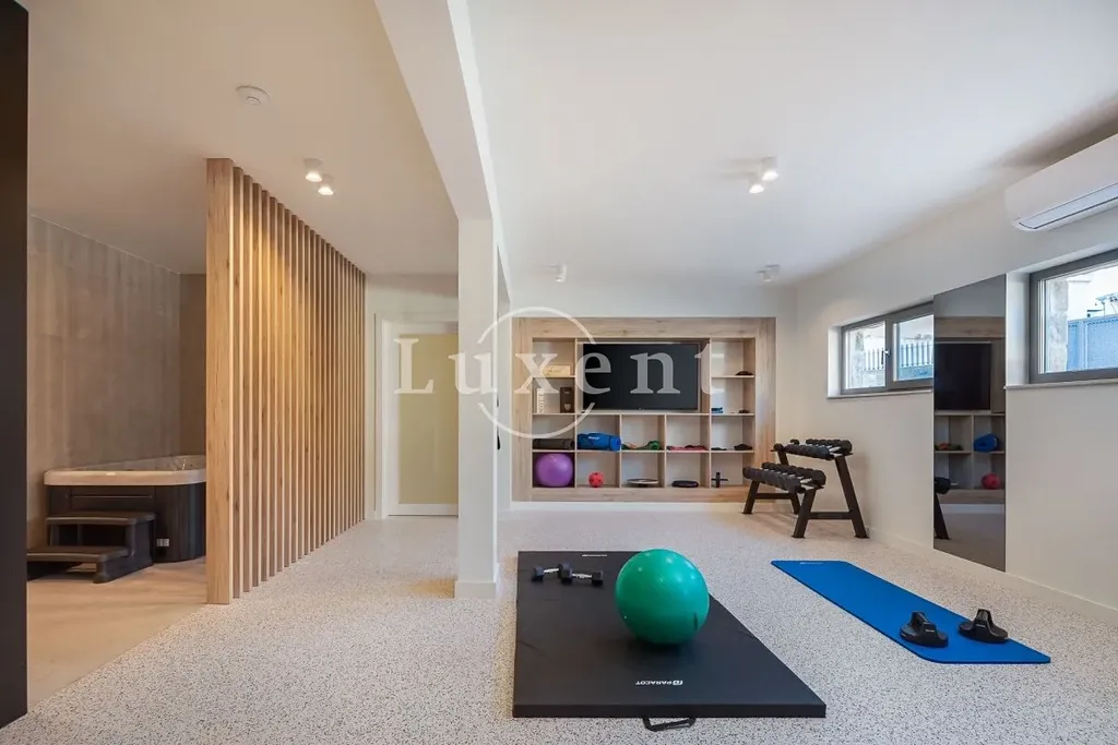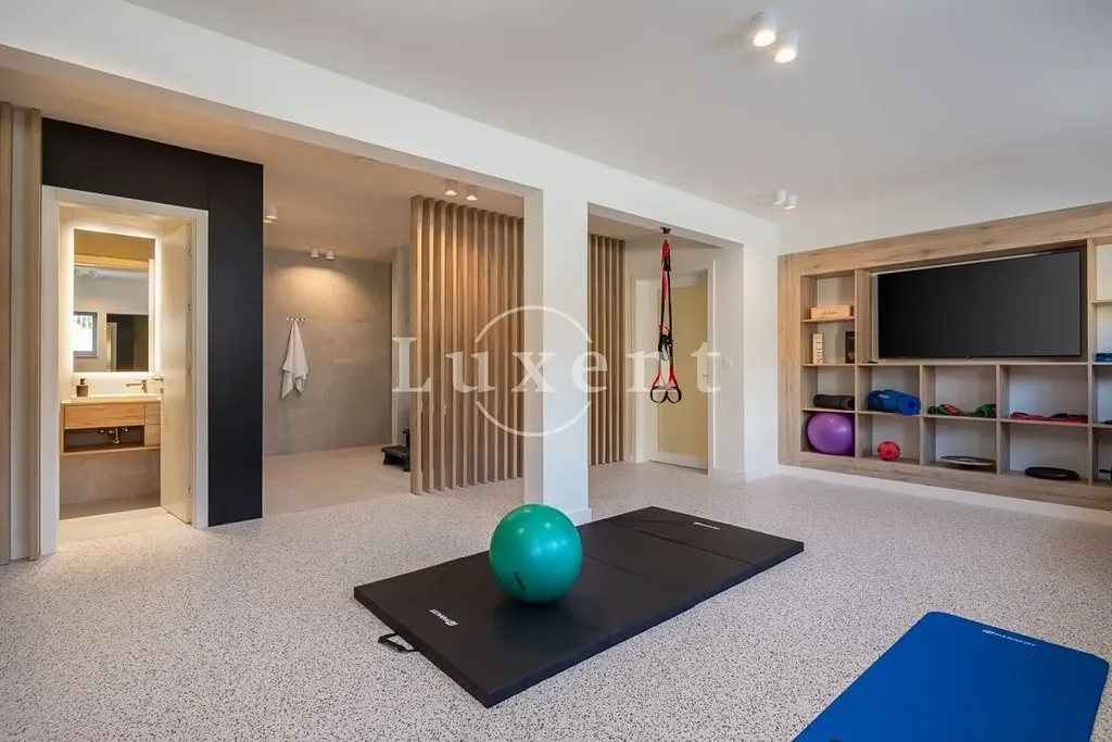 Vila je postavena a vybavena z nejkvalitnějších materiálů a rozkládá se na třech podlažích – suterén, přízemí a první patro. Celkem nabízí pět ložnic a šest koupelen. V suterénu se nachází wellness zóna s posilovnou, saunou a vířivkou. Na pečlivě upravené zahradě naleznete přelivový bazén se sluneční terasou, venkovní gril a parkování pro několik vozidel.