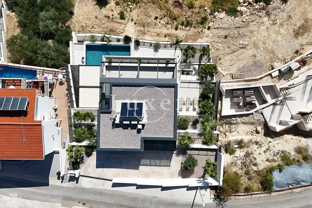 Nemovitost se rozkládá na několika podlažích s promyšlenou dispozicí. V horním patře je hlavní ložnice s vlastní koupelnou a prostornou terasou 44 m², vedle ní se nachází dvojgaráž uvnitř budovy. První patro nabízí čtyři ložnice, každou s vlastní koupelnou, a šatnu s ostrovem. Přízemí tvoří otevřený obývací pokoj propojený s kuchyní a jídelnou s přístupem na krytou terasu a k bazénu. Ve spodním podlaží je relaxační zóna s domácím kinem, saunou, fitness a prádelnou, přičemž ze všech místností je panoramatický výhled na moře.