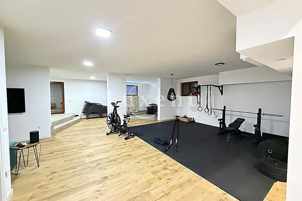 Objekt má tři podlaží – suterén, přízemí a první patro. V suterénu se nachází kotelna, prádelna, koupelna, fitness zóna, relaxační část a připravený prostor pro saunu. Přízemí tvoří koupelna, pracovna, prostorný obývací pokoj s jídelnou, moderně vybavená kuchyně, spíž, garáž a krytá terasa s přímým vstupem na upravenou zahradu. V prvním patře jsou dvě hlavní ložnice s vlastní koupelnou a vstupem na krytou terasu, doplněné o dvě další ložnice, z nichž každá má vlastní koupelnu a balkon.