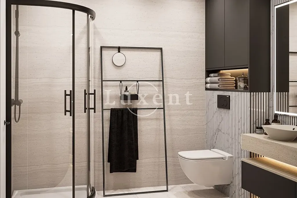 Velkou předností této nemovitosti je rozsáhlý venkovní prostor o velikosti 218,72 m², který poskytuje naprosté soukromí a veškerý komfort rodinného domu. K dispozici jsou kaskádovité terasy se zahradou a soukromým bazénem, přičemž jen pár kroků odtud se nachází upravená pobřežní zóna se sluneční terasou. Obyvatelé mají rovněž přístup do společných prostor – na střešní terasu s posezením a otevřeným výhledem na moře, do fitness zóny a saun v suterénu a také k dalšímu společnému bazénu.