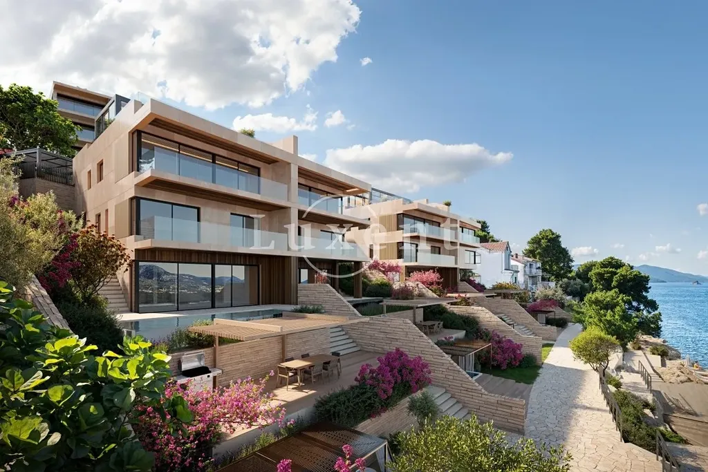 Nabízíme k prodeji luxusní dvoupodlažní apartmán s vlastní zahradou a bazénem, situovaný v první linii u moře v atraktivní lokalitě přímořského městečka Okrug Donji v Chorvatsku. Nemovitost se nachází přímo u moře a nabízí nádherný výhled i přímý přístup na pobřeží. Díky orientaci na sever, jih a západ je dokonale zasazena do středomořského prostředí. Apartmán je součástí menšího rezidenčního objektu se čtyřmi jednotkami a přístupem ze severní strany, přičemž nabízí kompletně promyšlený prostor pro bydlení, odpočinek i relaxaci.