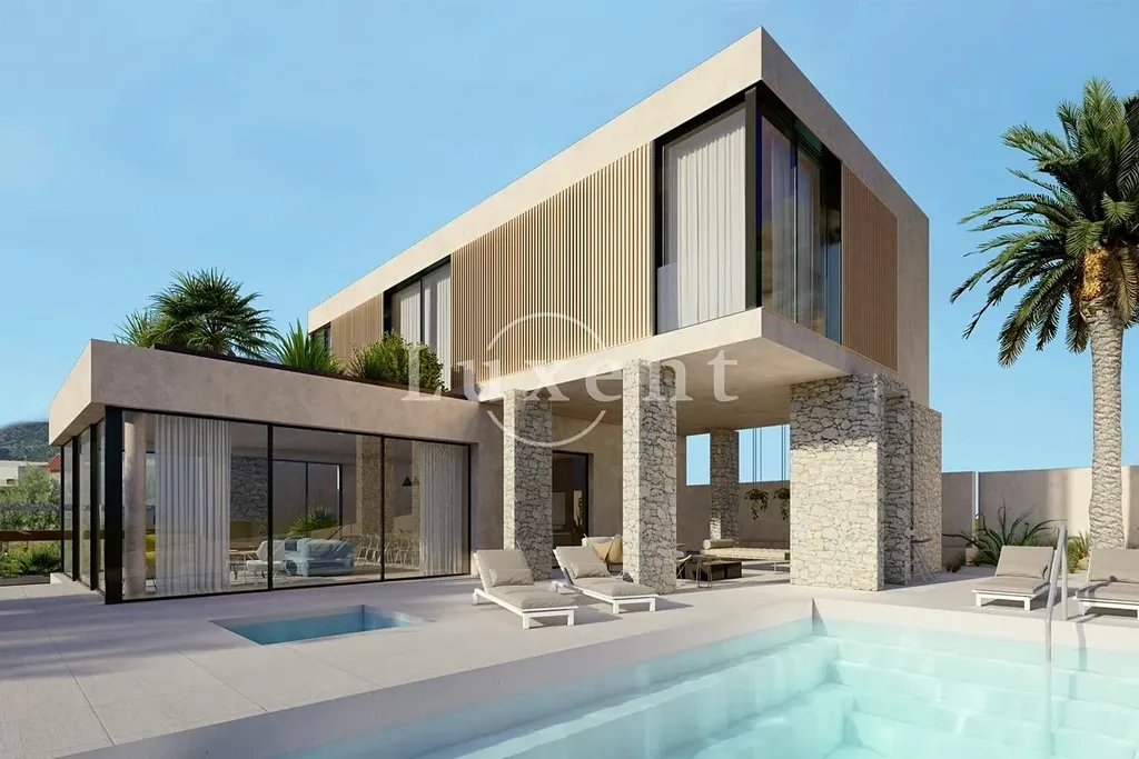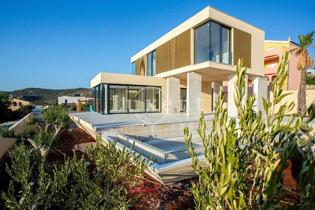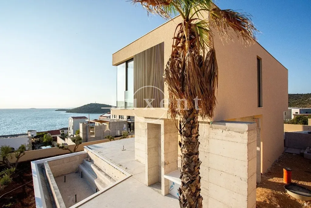 Nabízíme k prodeji moderní vilu s bazénem a výhledem na moře v Rogoznici – vila je aktuálně ve výstavbě. Tato pečlivě navržená moderní vila se nachází na mírně vyvýšeném pozemku o ploše 687 m², což umožňuje nerušený výhled na moře a okolní středomořskou krajinu. Celková užitná plocha domu bude 246 m² a vila je plánována jako jedna obytná jednotka se dvěma podlažími a podzemním prostorem, s plochou střechou, která umožňuje instalaci solárních panelů, kolektorů a dalších technologií.