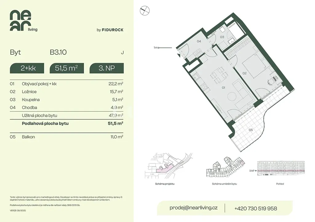 Nabízíme k prodeji byt 2+kk o podlahové ploše 51,5 m² s balkonem 11 m² v developerském projektu NEAR living v Praze 8, vznikajícím na pomezí Palmovky a Karlína.