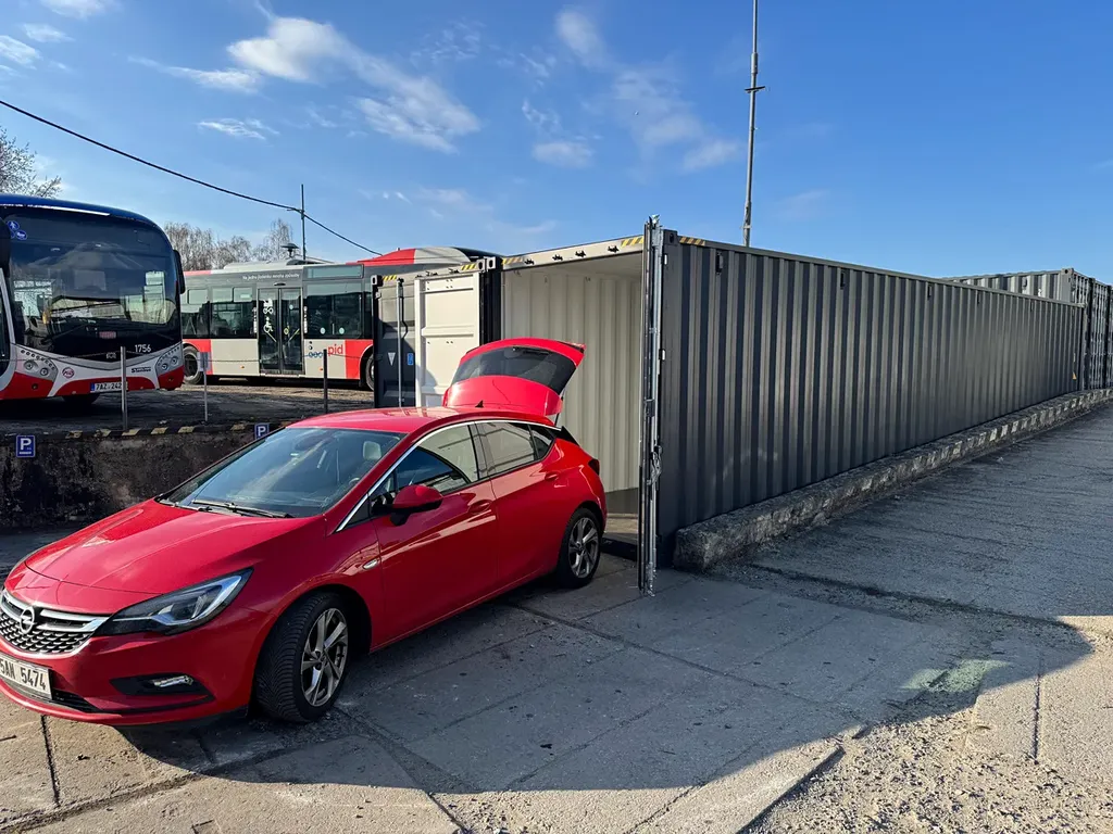 Dvoukřídlá vrata 2,343 m x 2,690 m. Kontejnery jsou přístupné autem až ke dveřím s dostatečným prostorem pro manipulaci. Objem kontejneru 75,7 m3.