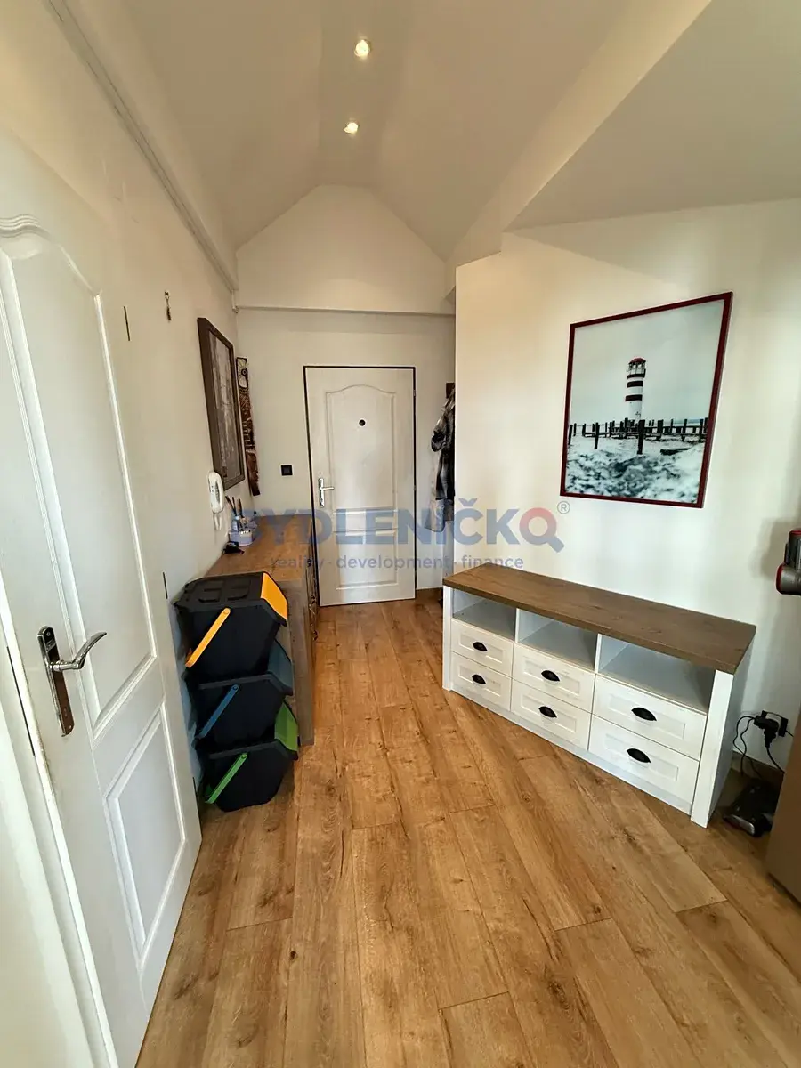 Bytová jednotka o dispozici 2+kk s celkovou podlahovou plochou 44 m2 se nachází ve 4. NP cihlového domu.