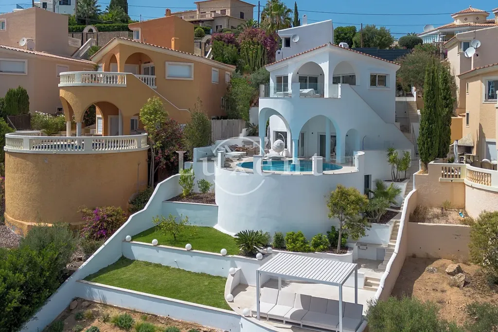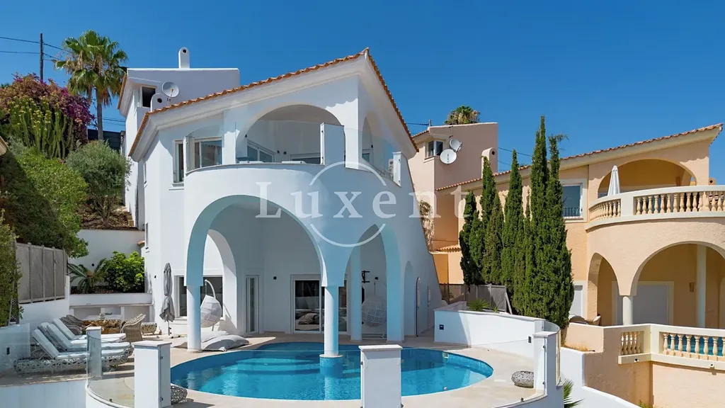 Nabízíme k prodeji luxusní 4+kk vilu na španělské Mallorce, která nabízí fantastický výhled na pláž Santa Ponsa, moře a Palmu.