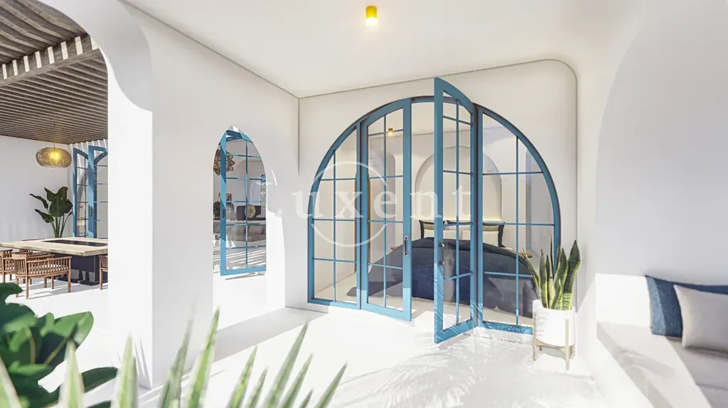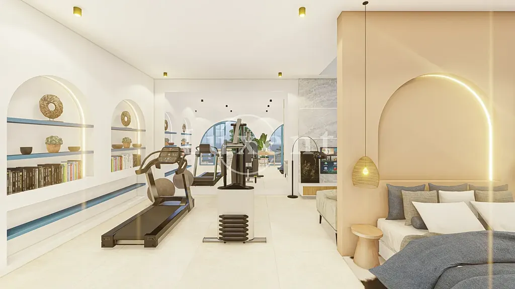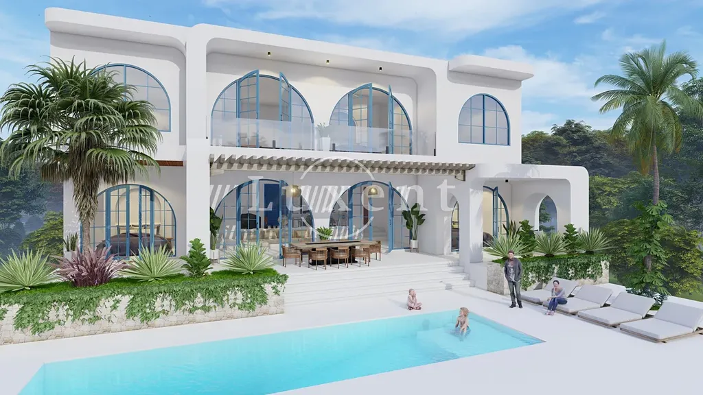 Vila o celkové podlahové ploše 323 m² na pozemku 800 m² disponuje prostorným obývacím pokojem s kuchyňským koutem, třemi ložnicemi, lodžií a prostornou terasou s velkým soukromým bazénem.