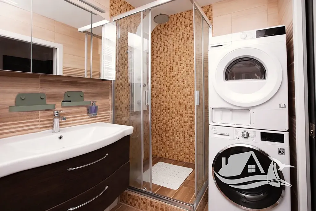 Kuchyně a koupelna jsou provedeny v kvalitních materiálech s důrazem na odolnost a dlouhou životnost. V kuchyni, chodbě, koupelně i na samostatném WC je položena kvalitní podlahová dlažba, která je praktická na údržbu a zároveň esteticky ladí s celkovým stylem bytu. Koupelna disponuje vanou i samostatným sprchovým koutem, což přináší maximální flexibilitu pro rodinný provoz. Toaleta je oddělena od koupelny, což zvyšuje komfort při každodenním používání. Obytné místnosti doplňuje odolná vinylová podlaha v dekoru dřeva, která spojuje elegantní vzhled s praktickou údržbou. Dispozice nabízí dostatek prostoru pro rodinu, pár i jednotlivce, kteří chtějí mít pohodlné zázemí i pracovní kout.