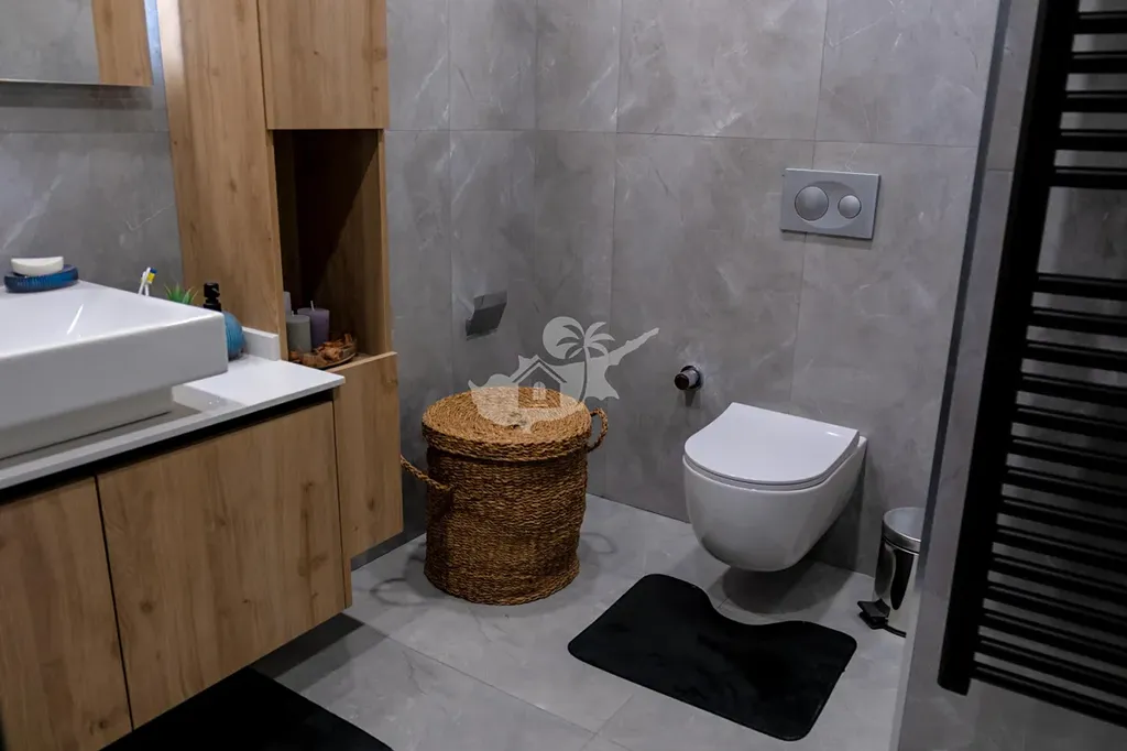 Moderní apartmán 2+kk s balkonem a krásným výhledem na moře a bazén. Nachází se jen pár kroků od pláže, nabízí soukromou pláž, venkovní bazén, fitness, sky bar a barbecue zónu.