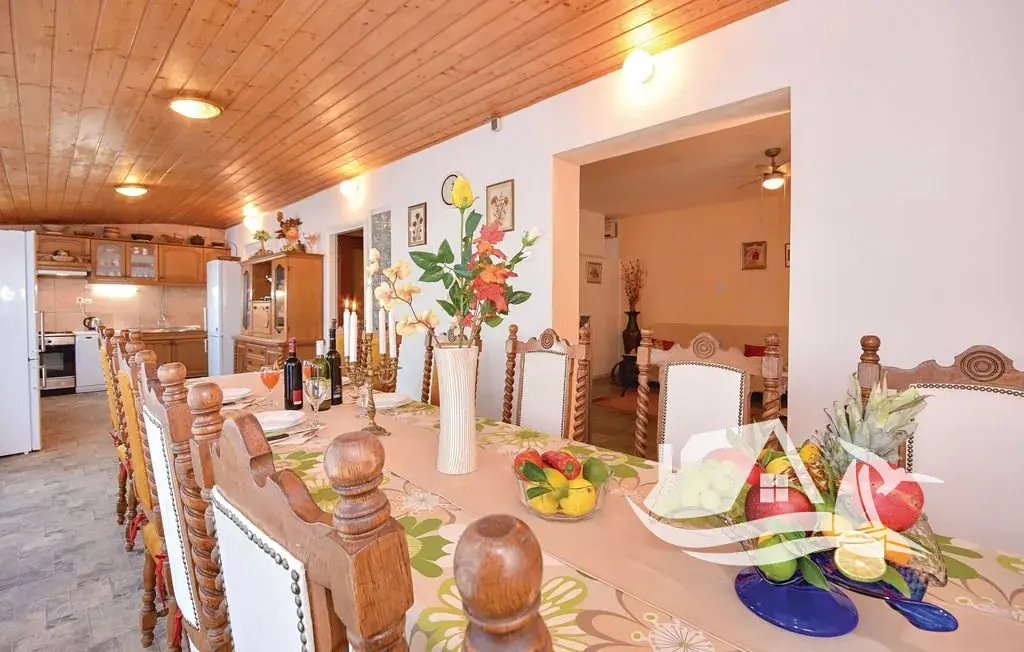 Rovný pozemek o rozloze 753 m² nabízí dostatek prostoru, soukromí a otevřený výhled na celé Jaderské moře. Dům s obytnou plochou 260 m² disponuje pěti pokoji, samostatným apartmánem a dvěma velkými terasami o 40 a 50 m², odkud je výhled jako z pohlednice. Čtyři koupelny, dvě kuchyně a velkorysý obývací prostor pohodlně zvládnou rodinné oslavy, letní návštěvy i plně obsazenou sezonu. Součástí je garáž o 80 m², sklep, technické místnosti, venkovní bazén, jacuzzi, fitness zázemí i prostor pro loď. Parkování pro více než osm aut, klimatizace, rychlý internet a možnost vytápění krbem nebo kamny zajišťují komfort po celý rok.