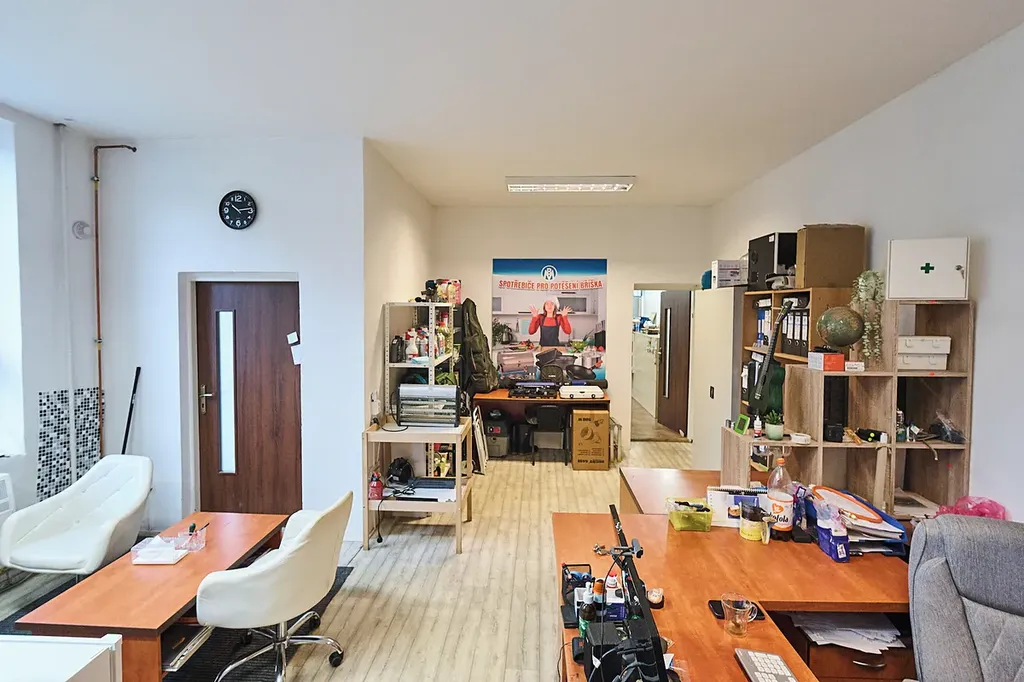 • Druhé podlaží (1. patro): kanceláře, dva osobní byty, dále půdní prostory – celková plocha 316 m²