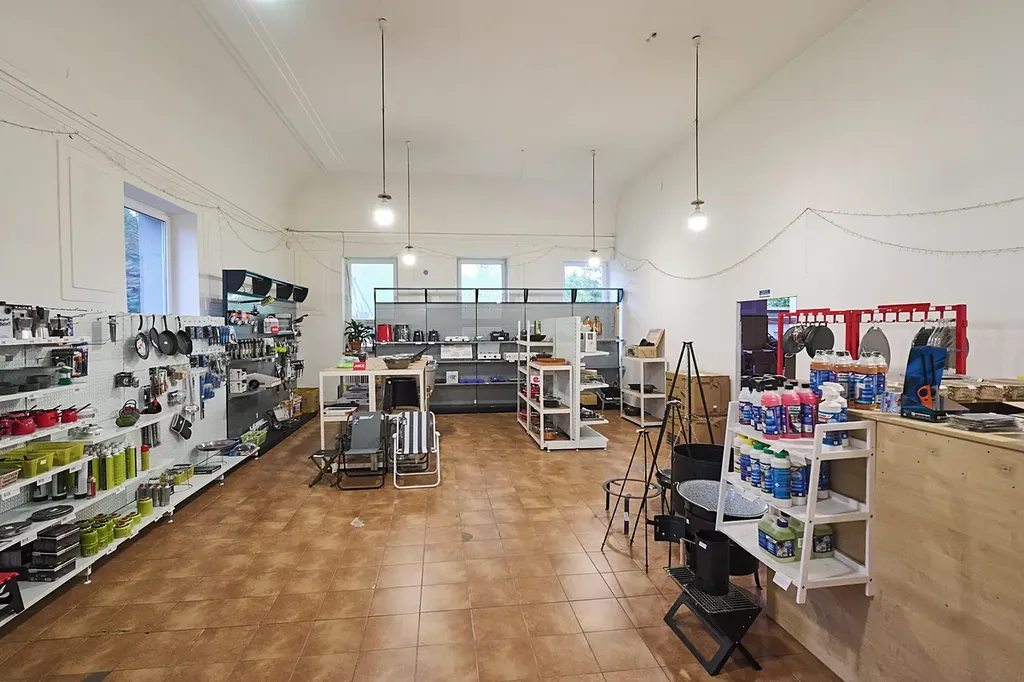 • První podlaží (přízemí): kancelář, skladovací prostory, toalety, sprcha a rozlehlý sál (aktuálně využívaný jako sklad) – celková plocha 356 m²