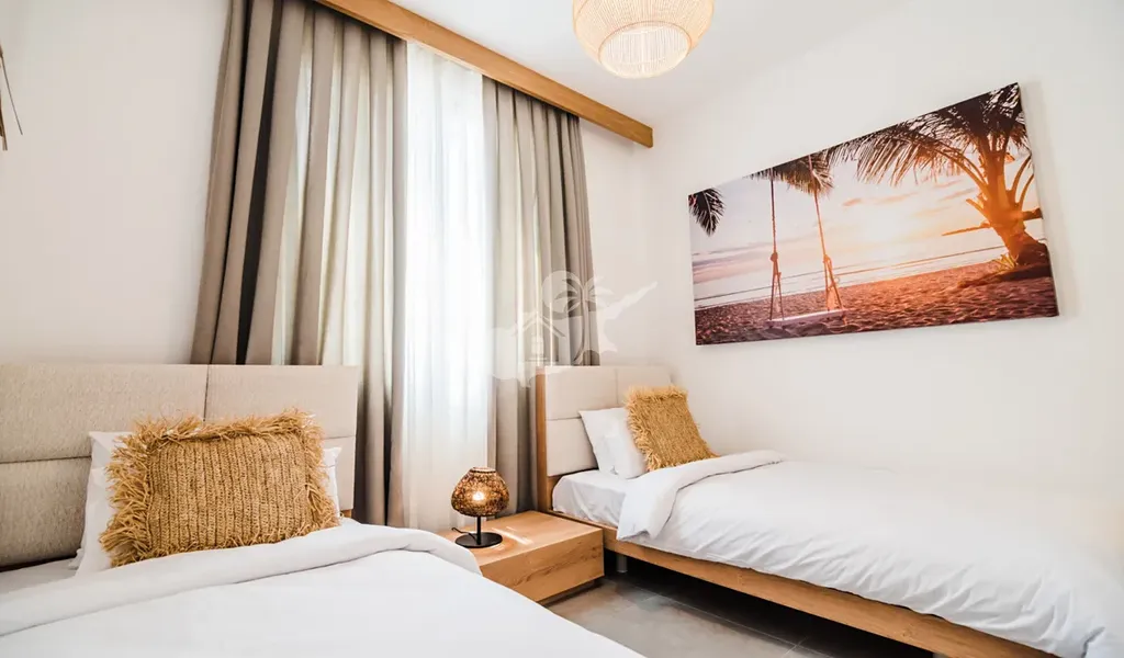 Objevte dokonalé spojení luxusu a pohodlí v tomto elegantním apartmánu se dvěma ložnicemi a zahradou, který je součástí prestižního resortu Sun Valley Seaside.
