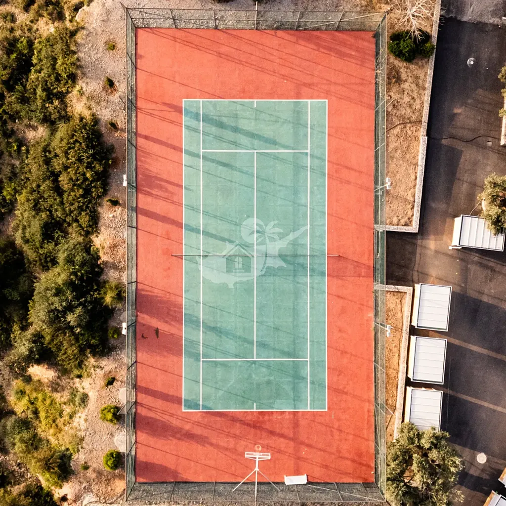 Celková plocha terasy je 203 m², z toho 80 m² tvoří střešní terasa s úchvatným výhledem na moře a hory. Plocha bazénu je 50 m² a garáže 24 m². Plocha pozemku činí 503 m2.