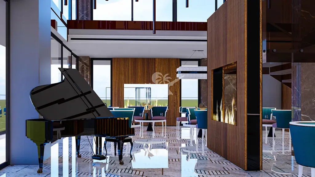 Pět druhu restauraci ( italská , místní , mediterrenean , shushi bar a další ) tří bazény , z toho jeden infinity pool , různé sporty a sportovní areály, parky, obchodní centrum, kde budou jen luxusní značky. Lázně, fitness centra , obchody a kavárny.