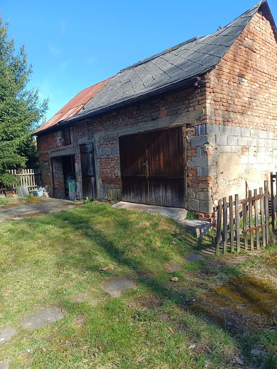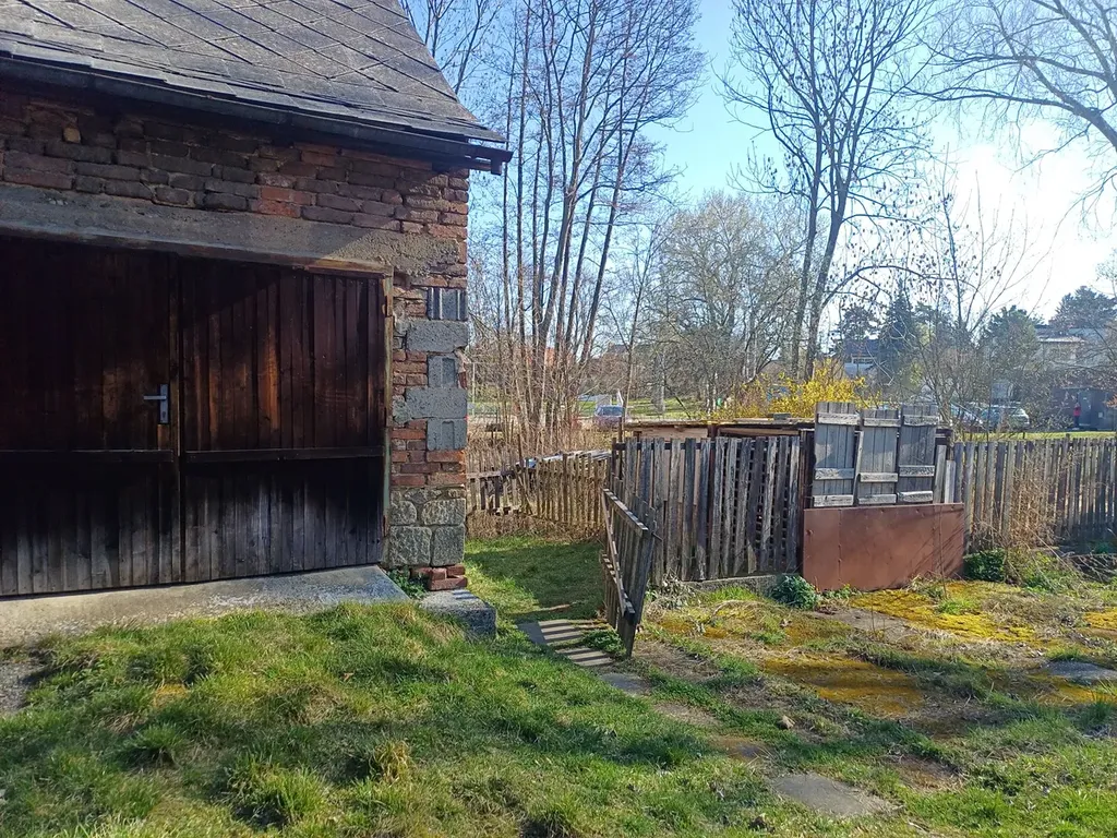 zděná stavba s dvojitými vraty a půdou, bez omítky, nezateplená, sloužící na skladování dřeva, uhlí a nářadí nebo stavebního materiálu a dále dvojgaráž, která není zapsaná v katastru nemovitostí.