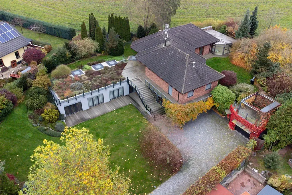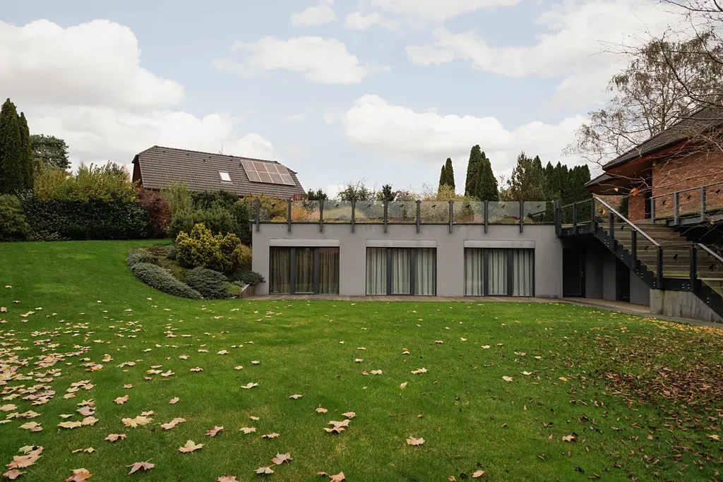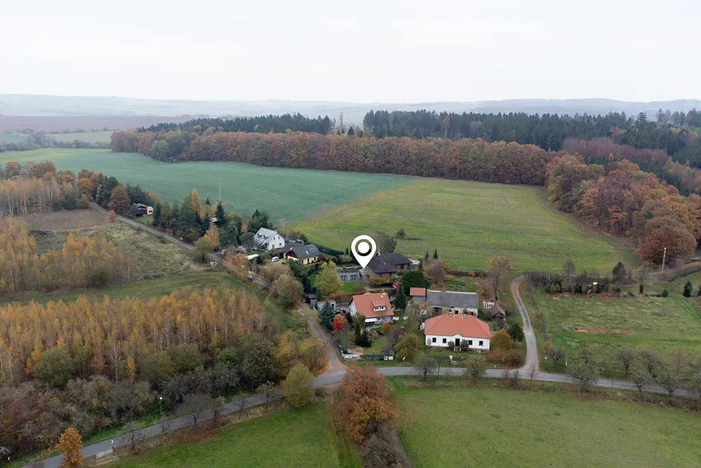 Tento rodinný dům se 7 pokoji a kuchyňským koutem nabízí komfortní a prostorné bydlení v klidné vesnici obklopené lesy, což zajišťuje soukromí a příjemné prostředí. S jihozápadní orientací a efektivním využitím svažitého terénu je interiér příjemně prosvětlený a zahrada o rozloze 1585 m² s vrostlou zelenou vegetací, poskytuje dostatek prostoru pro různé aktivity a relaxaci. Dům byl přestavěn z původní budovy a v roce 2012 byla přistavěna nová část s vegetační střechou.