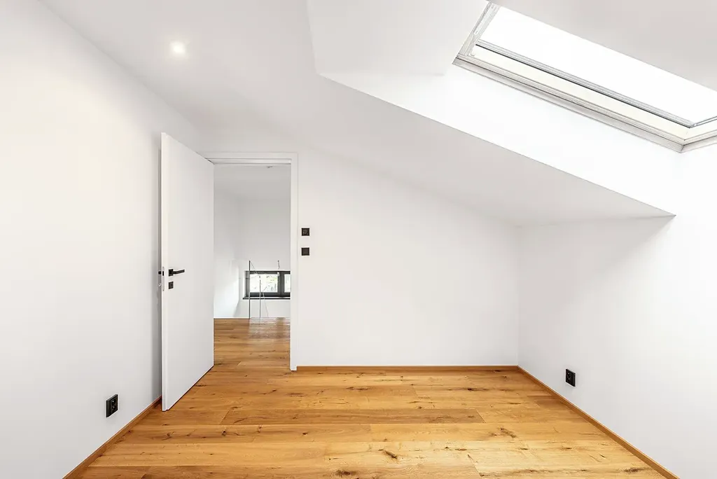 Horní patro lze snadno přetvořit na samostatnou bytovou jednotku, což nabízí elegantní řešení pro vícegenerační bydlení, samostatný pronájem nebo oddělenou zónu pro dospívající děti.