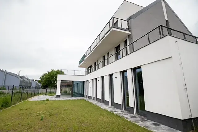 Přehlednou dispozici bytu tvoří obývací pokoj s kuchyňským koutem, komorou, třemi ložnicemi a pracovnou. K bytu patří rozhlehlá zahrada s terasou a dvě krytá parkovací stání v garáži s přípravou pro dobíjení elektromobilu.