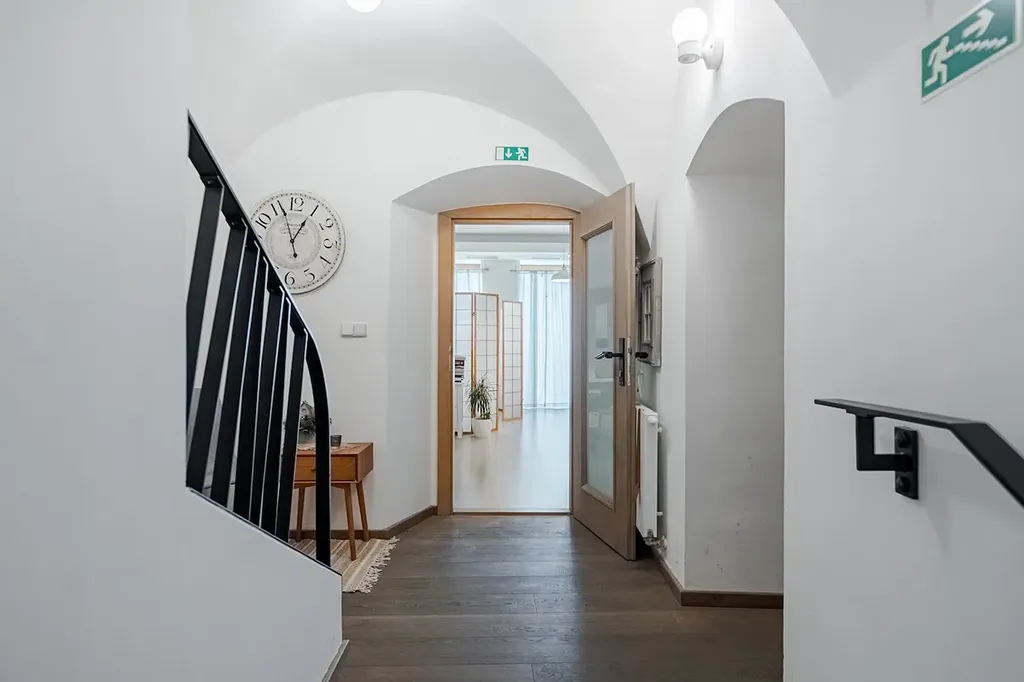 Exkluzivně nabízíme k prodeji výjímečný měšťanský dům na Smetanově náměstí v Litomyšli. Objekt č.p. 62 je tvořen třemi nadzemními podlažími, kompletním podsklepením a rozlehlým podkrovím, které bylo citlivě přestavěno na mezonetový byt. Dům prošel v letech 2008-2012 velmi pečlivou a kompletní rekonstrukcí, během níž byly zachovány původní historické prvky a zároveň doplněny moderní materiály a technologie. Výsledkem je funkční a reprezentativní nemovitost, která nabízí široké možnosti využití – obchodní, rezidenční i investiční. Celková plocha parcely 250 m². Celková vnitřní užitná plocha domu činí přes 459,7m², další desítky metrů tvoří dvorek a další příslušenství k domu. Prodej probíhá formou převodu obchodního podílu společnosti s ručením omezeným, která je výhradním vlastníkem nemovitosti. Přízemí domu bylo původně kolaudováno jako kavárna a tomu odpovídá i jeho dispoziční členění. Dnes zde funguje designový obchod s doplňky Sen dekor, nicméně prostory jsou připraveny i pro návrat ke gastro provozu. Vstupní část se schodištěm navazuje na hlavní místnost s barem, doplněnou o zázemí a sklad. Ze zadní části se vchází do cihlového klenutého sklepa, který byl využíván jako soukromá vinotéka, ideální pro degustace, klubový prostor nebo komorní akce. Ze sklepa je možné vyjít na dvorek s posezením, který může sloužit jako zahrádka pro kavárnu nebo soukromá relaxační zóna. Celková užitná plocha této části je 106,9 m². Ve druhém nadzemním podlaží se nachází prostor původně kolaudovaný ke kavárně, který byl v posledních letech využíván jako ordinace čínské medicíny. Má samostatné sociální zázemí a vstup na jižně orientovanou terasu o velikosti 20,2 m². Tento světlý a tichý prostor o celkové ploše 39,9 m² je vhodný jako ordinace, kancelář, studio nebo lze přestavět na další bytovou jednotku. Ve třetím podlaží najdeme dvě obytné části. První je plnohodnotný byt 1+kk o výměře 55,5 m², orientovaný do náměstí. Dispozici tvoří předsíň, koupelna a prostorná obytná místnost s kuchyňským koutem. Jednotka je samostatně přístupná a nabízí možnost dlouhodobého i krátkodobého pronájmu. Druhou část tohoto podlaží tvoří vstup do mezonetového bytu, který se rozprostírá přes 3. a 4. nadzemní podlaží. Mezonetový byt o dispozici 4+kk a vnitřní užitné ploše 163,3 m² představuje vrchol této nemovitosti – jak rozlohou, tak zpracováním. Při vstupu vás přivítá chodba, kde po pravé straně stojí pianino a navazuje první koupelna . Na patře se nacházejí dvě samostatné ložnice orientované do vnitrobloku, které poskytují naprostý klid. Schodištěm vystoupáte do hlavní obytné části bytu – otevřeného prostoru s výraznou trámovou konstrukcí, odkrytou výškou stropu a precizně řešeným dispozičním členěním. Dominantou tohoto podlaží je kuchyně s velkou pracovní plochou a vitrínami na míru, jídelní kout a obývací část s orientací na jih. Nechybí zde druhá koupelna, samostatná toaleta a další pokoj, který je přístupný přes galerii – ideální jako pracovna, dětský pokoj nebo pokoj pro hosty. Celý prostor působí velmi vzdušně, propojeně, a přitom útulně. Doplněn je lodžií. Tento byt je architektonicky nejhodnotnější částí domu a zcela připravený k užívání bez nutnosti dalších úprav. Dům je napojen na vodovod, kanalizaci, plyn a elektřinu. Vytápění je řešeno samostatně v rámci jednotlivých jednotek. Provozní náklady jsou díky samostatnému měření jednotlivých jednotek dobře přehledné. U nebytových prostor (ordinace čínské medicíny a obchod dohromady) činí orientační měsíční náklady na elektřinu cca 2 300 Kč a na plyn cca 2 700 Kč. Bytová jednotka 1+kk má orientační měsíční náklady na elektřinu přibližně 600 Kč a na plyn cca 1 300 Kč. U mezonetového bytu 4+kk se náklady na elektřinu pohybují kolem 3 250 Kč měsíčně a na plyn cca 3 100 Kč. Náklady na vodu a stočné jsou u všech jednotek účtovány dle skutečné spotřeby a počtu osob. Objekt je vhodný pro vlastní vícegenerační bydlení, kombinaci komerčního a rezidenčního využití nebo jako výnosová investice s možností rozdělení na tři samostatné jednotky. Rekonstrukce domu probíhala s maximálním důrazem na kvalitu a zachování hodnoty stavby, investice do stavebních úprav přesáhly 12 milionů korun. Tato nemovitost představuje výjimečnou příležitost v historickém centru Litomyšle, která bude dále růst na hodnotě.