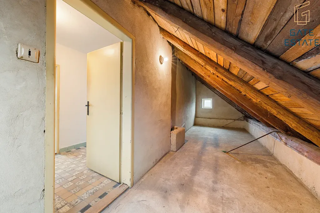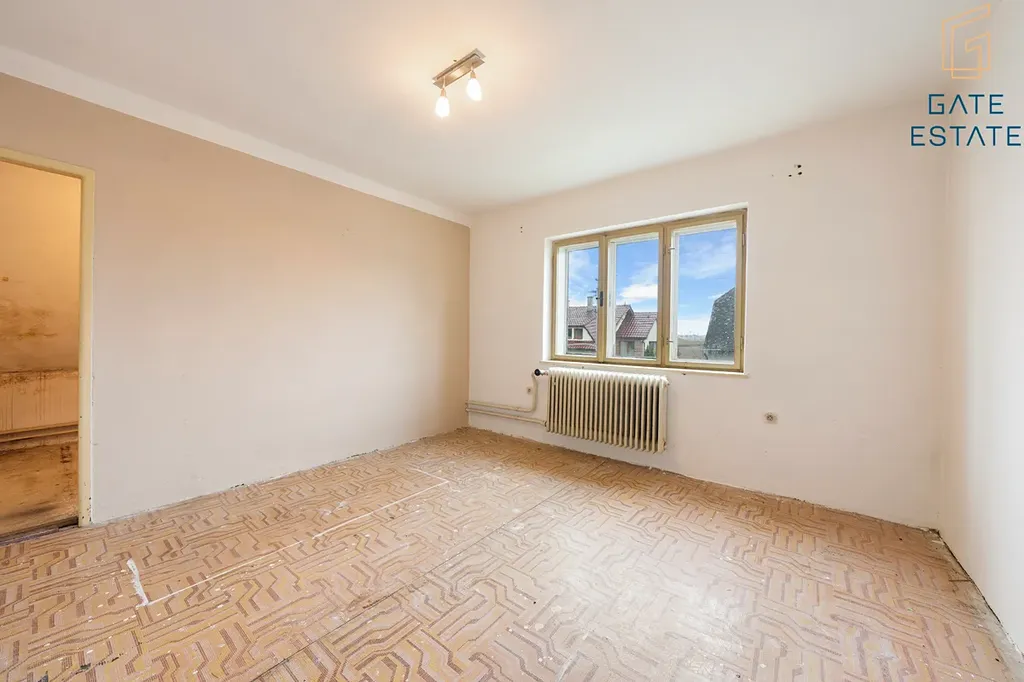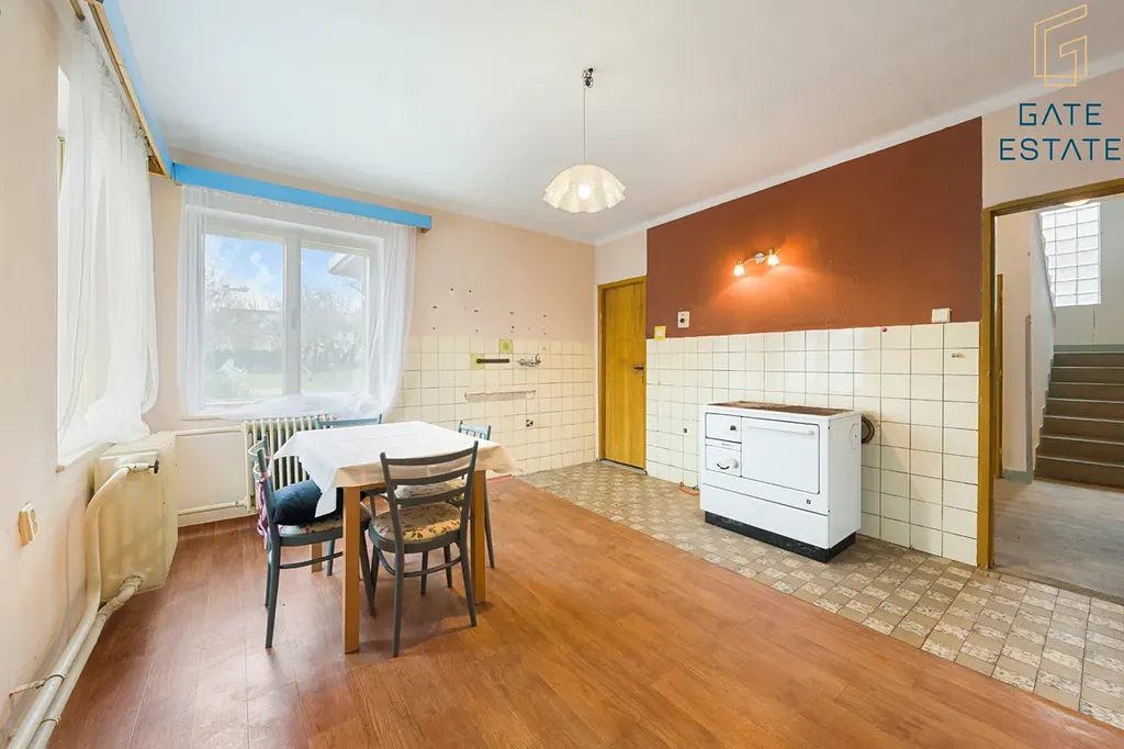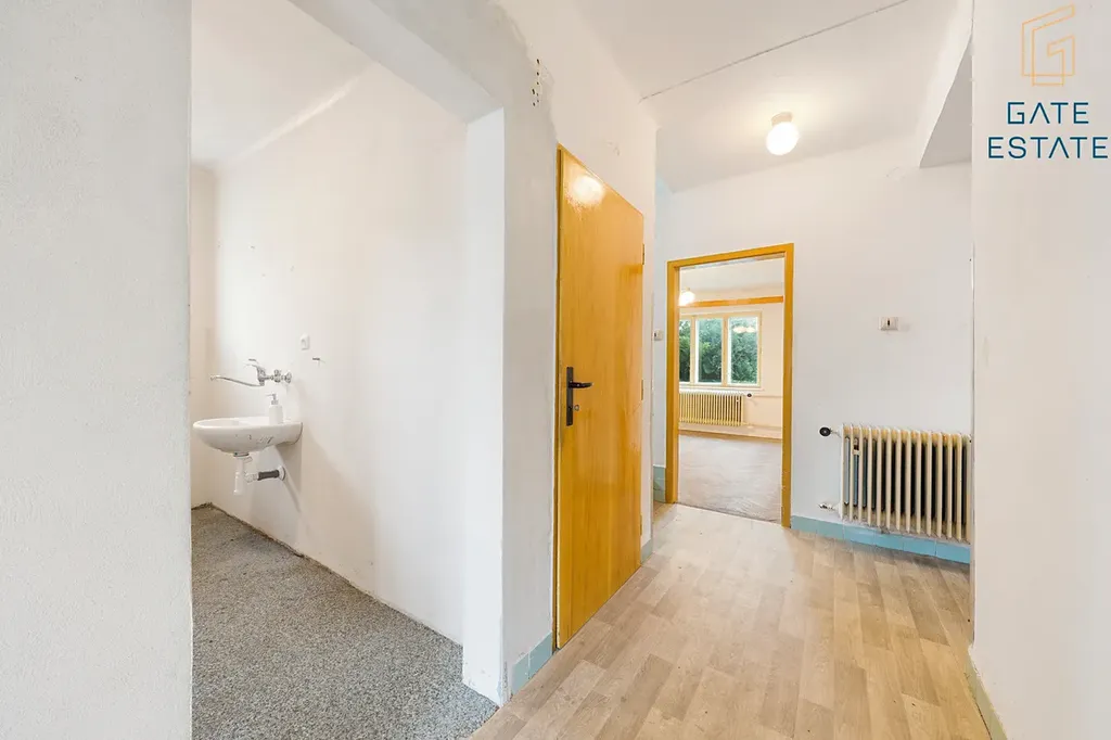 - 1. nadzemní podlaží: vstupní chodba, obývací pokoj navazující na kuchyni (ideální k propojení při rekonstrukci), samostatný pokoj, koupelna s WC.