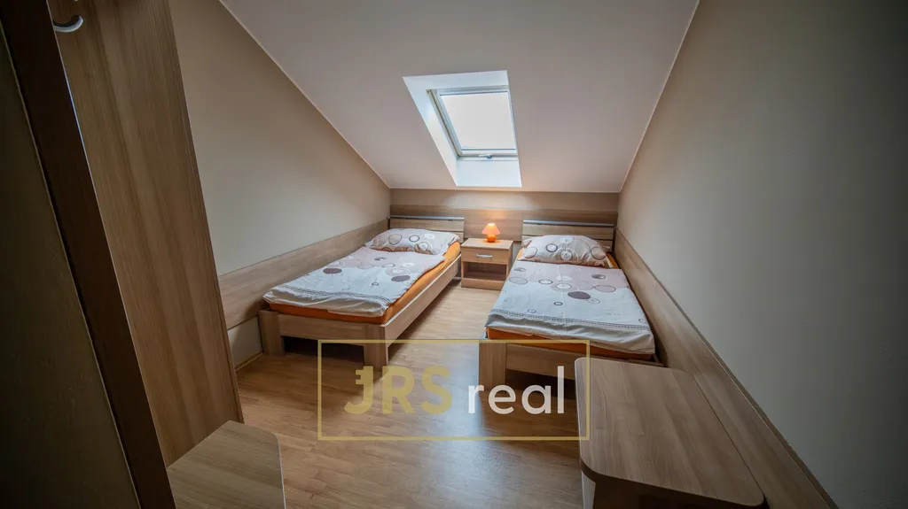 Po vstupu do nemovitosti Vás přivítá chodba, odkud vede schodiště do obytné části, kde se nachází 5 útulných, plně vybavených pokojů s celkovou kapacitou 11 lůžek. Každý pokoj disponuje vlastním sociálním zázemím – koupelnou se sprchovým koutem a toaletou, což zajišťuje maximální soukromí a pohodlí pro hosty.