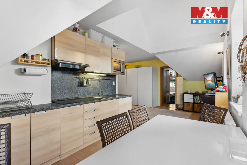 Nabízíme k prodeji krásný prakticky řešený podkrovní byt 2+kk o celkové rozloze 53 m2 + parkovací stání v klidné části města Harrachov. Byt je velmi vkusně zařízený, plně vybavený, poslední roky téměř nevyužívaný. Dispozičně je šikovně řešený tak, aby vznikly 2 samostatné ložnice, ale zároveň byl zachován obývací pokoj s kuchyňským koutem. V bytě je dále koupelna (s podlahovým vytápěním) se sprchovým koutem a WC a komora přístupná z chodby. Nemovitost se nachází v uzavřeném bytovém resortu Resident Harrachov, kde je též i parkovací stání patřící k bytu vymezené samostatným parcelním číslem. K bytu dále patří sklep v suterénu domu. Samotná nemovitost je zděná, ve velmi dobré kondici s vlastní kotelnou. Celý komplex se nachází v klidné části města přitom s výbornou dostupností do centra. Lyžařské středisko je cca cca 1,5 km, bobová dráha a lanové centrum 300m. Pokud hledáte útulný plně vybavený apartmán na klidném místě, ale v srdci Krkonoš, pak je pro Vás tato nemovitost ideální.
