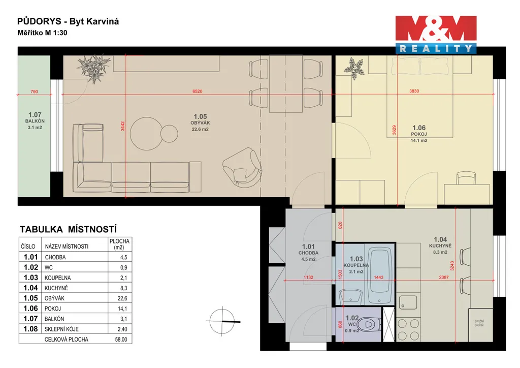 | Užitná plocha | 58 m2 |