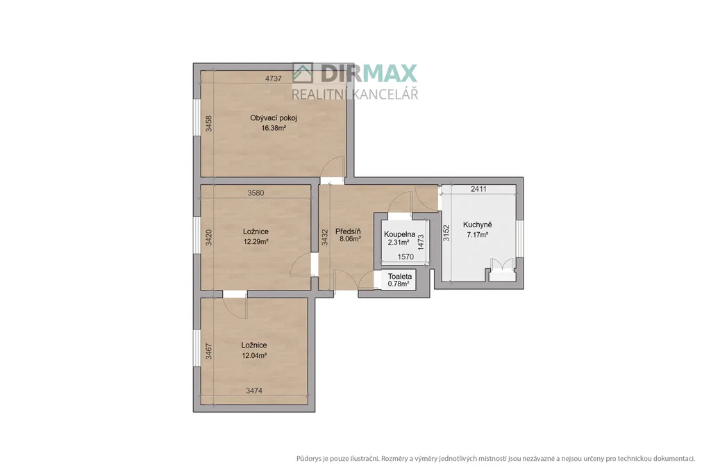 Dispoziční řešení je patrné z přiloženého půdorysu a fotografií. Je nutné počítat s kompletní rekonstrukcí bytu, nicméně byt je v dobrém a udržovaném stavu, výhodou je betonové jádro, které je výhodné při rekonstrukci využít a nevynakládat další náklady na demolici a výstavbu nového jádra.