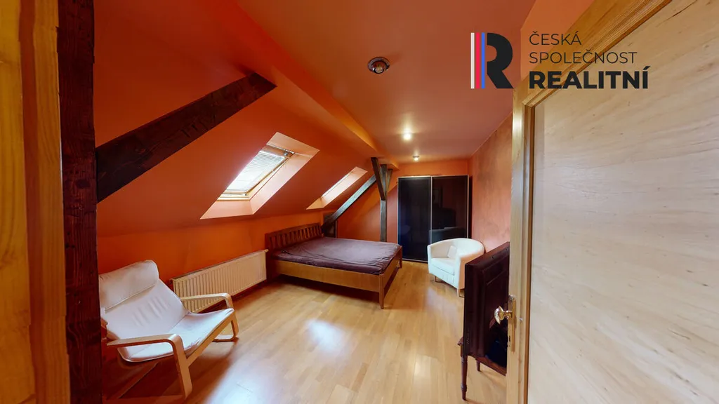 Byt vznikl vestavbou do půdního prostoru a zabírá celou délku domu, přibližně 24 metrů. Díky tomu nabízí netypické řešení prostoru a větší variabilitu využití jednotlivých místností. Dispozice je řešena jako 4+kk, přičemž jednotlivé části bytu na sebe navazují v podélném uspořádání. Prostor působí otevřeně a umožňuje případné úpravy dle potřeb nového vlastníka.