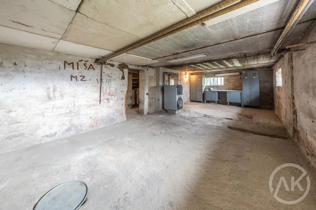 Je to tady i kompletně podsklepeno a sklepy jsou v dobrém stavu, pozemek má 1207 metrů a dům je napojen na všechny inženýrské sítě. To ti dá při rekonstrukci svobodu a možnost využít všech technologií, které současnost nabízí. Okna jsou plastová, částečně je i zateplená fasáda, krovy v dobrém stavu.
