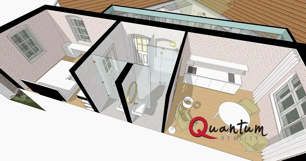 • pavlačový dům (cca 48 m² + sklep) – ideální jako samostatná jednotka k pronájmu nebo komerční prostor