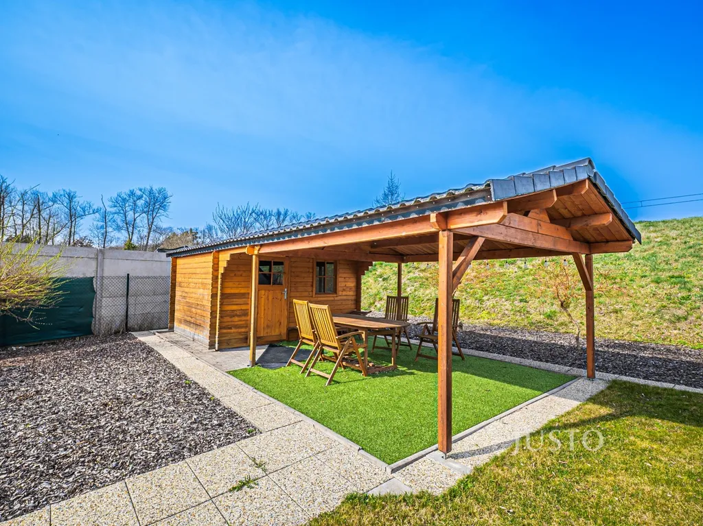 Ve výhradním zastoupení majitelů Vám nabízím prodej dřevostavby rodinného patrového domu z roku 2019 s krytým parkovacím stáním, pergolou, zahradním domkem a udržovanou zahradou o nadstandardní celkové ploše pozemku 1 389 m² .