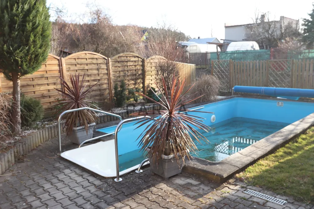 Velkou přidanou hodnotou je samotný pozemek. Na zahradě najdete kryté venkovní posezení, které přímo vybízí k letním večerům s rodinou nebo přáteli, dále zahradní domek a také bazén, který oceníte zejména v teplých měsících. Zahrada je tak ideálním místem pro relax i aktivní trávení volného času.