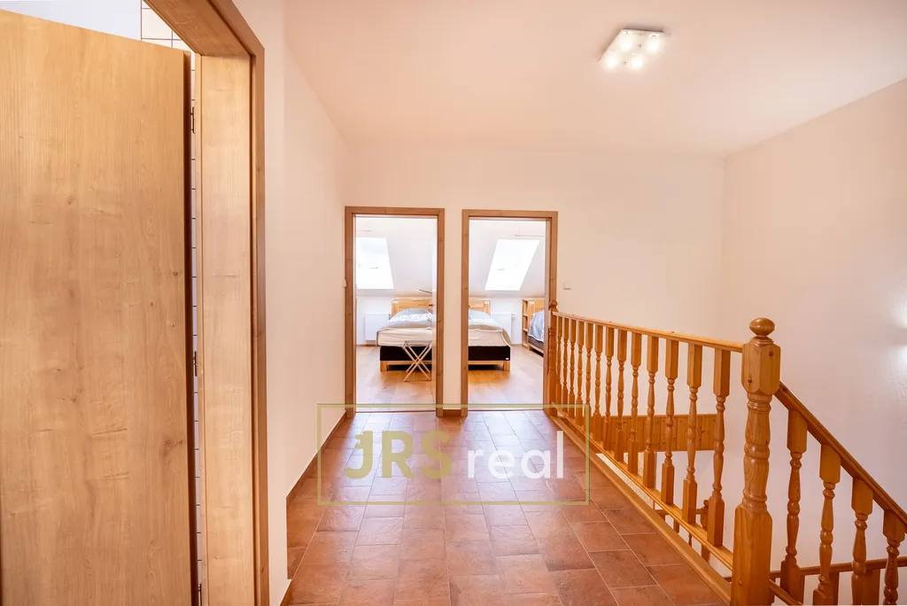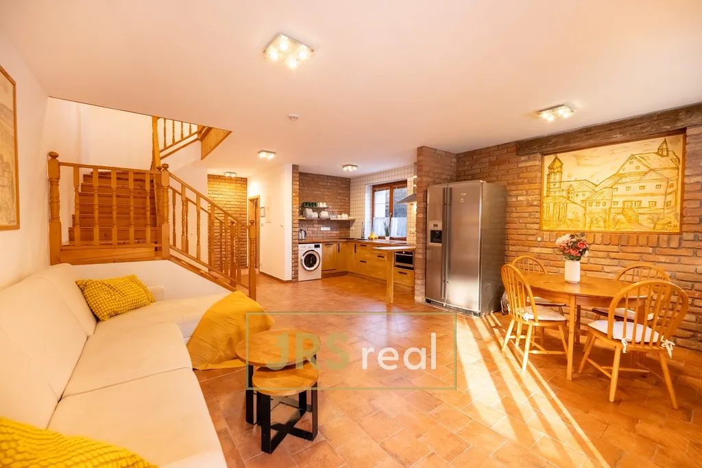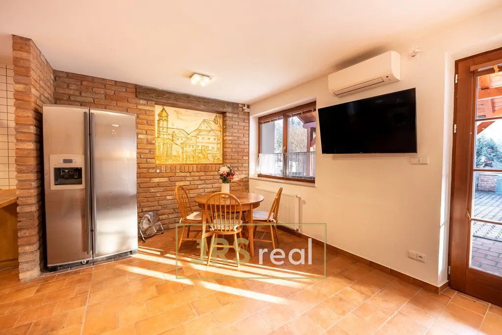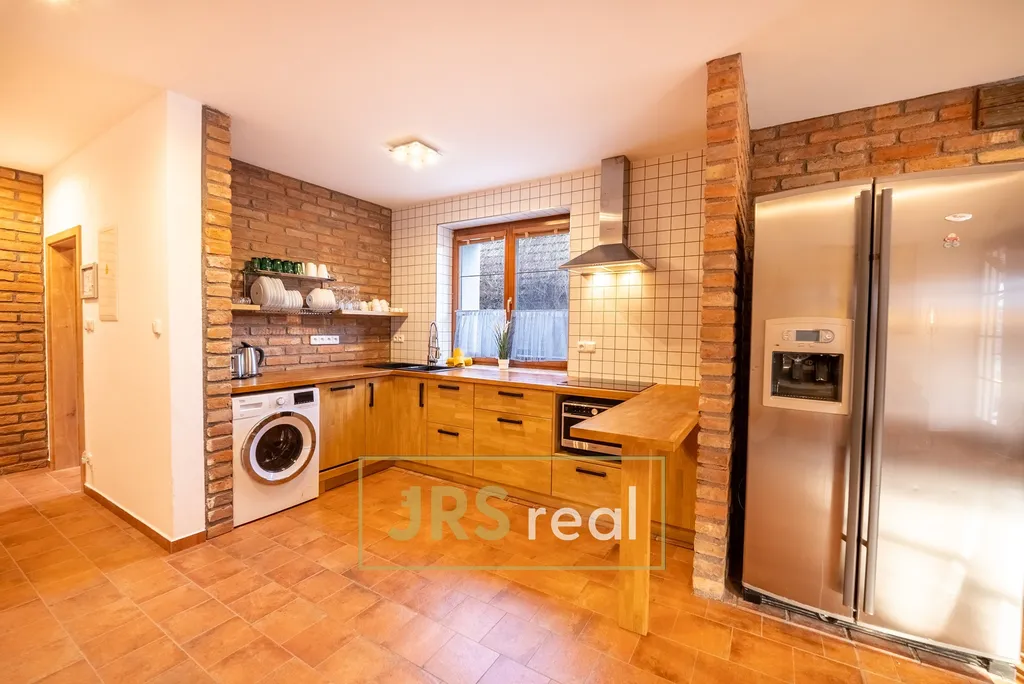 Ve výhradním zastoupení majitele nabízíme k pronájmu útulný a prakticky řešený mezonetový byt o dispozici 4+kk a rozloze 122 m² s vlastním vstupem i terasou. Dominantou bytu je prostorný obývací pokoj s kuchyňským koutem, který nabízí dostatek místa pro společné chvíle i relaxaci. Obývací část je vybavena rohovou pohovkou s možností rozložení na dvě lůžka a úložným prostorem, nechybí ani televize. Moderní kuchyň je plně vybavena kuchyňskou linkou se čtyřmi indukčními plotýnkami, americkou lednicí s mrazákem, mikrovlnnou troubou, myčkou a pračkou se sušičkou, což zajišťuje maximální komfort při každodenním užívání. Byt disponuje několika ložnicemi – hlavní ložnice je vybavena manželskou postelí a pohovkou s možností dvou přistýlek. Další pokoje jsou vybaveny celkem čtyřmi kvalitními lůžky, což poskytuje dostatek prostoru pro spaní i odpočinek. Koupelna je vybavena umyvadlem a sprchovým koutem. Součástí bytu je i praktická technická místnost. Velkým benefitem je vlastní terasa, která poskytuje příjemné místo pro relaxaci, posezení nebo trávení volného času s rodinou a přáteli. Dvoupodlažní řešení bytu přináší přehledné rozdělení denní a klidové zóny, což zvyšuje komfort bydlení. Vlastní vstup zajišťuje maximální soukromí a pocit bydlení v rodinném domě. Samozřejmostí je klimatizace a přístup ke společné TV anténě (DVB-T2). K bytu náleží jedno parkovací stání. V celém objektu je využíváno ekologické řešení – splachování pomocí tzv. šedé vody ze studny a částečné využití fotovoltaiky pro snížení provozních nákladů. Na rozsáhlém pozemku se navíc nachází nabíjecí stanice pro elektromobily. Byt je ideální pro rodinu nebo náročnější klienty hledající více prostoru a je ihned k nastěhování. V případě zájmu o prohlídku kontaktujte makléře.