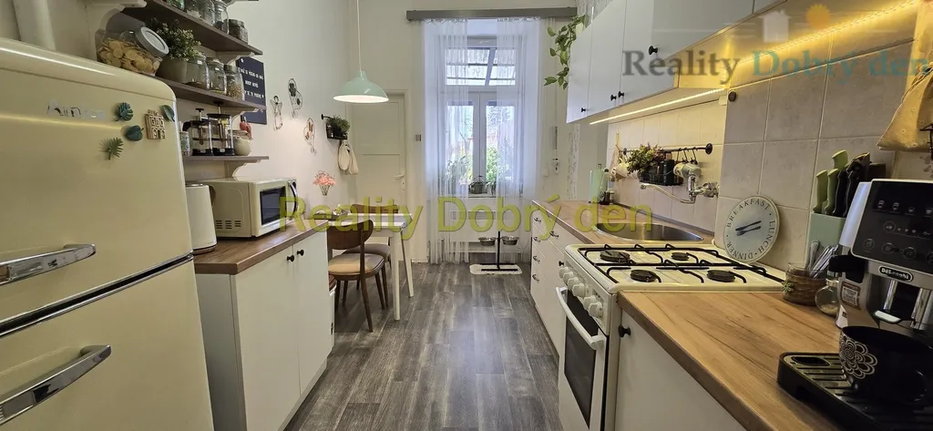 Byt má neprůchozí pokoje, obývací pokoj s pódiem a vestavbou, koupelna s umývadlem a vanou, zvlášť WC, kuchyně s technickou místností, z pokoje východ do kryté terasy se vstupem do oplocené zahrádky. K bytu náleží podíl na pozemku za domem, přičemž tento podíl představuje opocenou zahrádku o výměře 151 m2. Zahrada je využita jako relaxační zóna s venkovním posezením, fotografie rozkvetlé zahrady jsou z loňského léta.