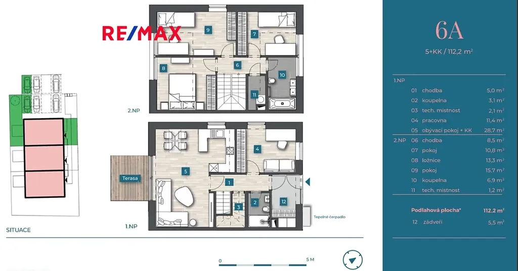 • dispozice 5+kk s podlahovou plochou 112.8 m²