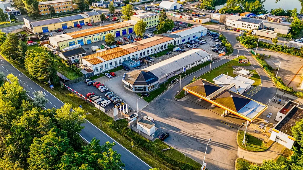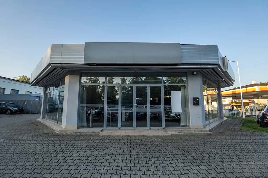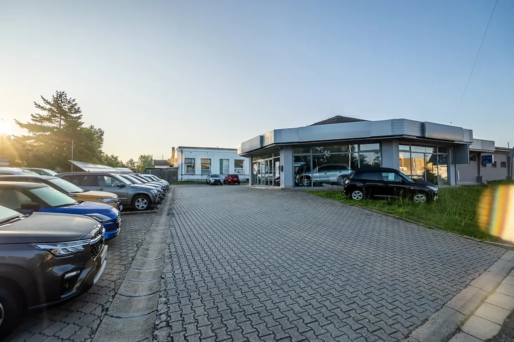 Jedná se o samostatně stojící objekt autosalonu se servisem. Objekt přízemní, nepodsklepený, obsahuje showroom, sociální zázemí, kancelář, sklad, prostory autoservisu. Jde o ocelový montovaný skelet s vyzdívkami, střecha je sedlová, bleskosvod je instalován, krytina z živičného šindele a plechu. Standardní omítky, obklad soklu. Podlahy jsou z dlažby. Splachovací WC, umyvadla. Okna jsou plastová a hliníkové výkladce. Vrata jsou plechová. Vytápění je ústřední s plynovým kotlem, teplá voda je zajištěna. Objekt je napojen na elektřinu, veřejný vodovod, kanalizaci a plyn.