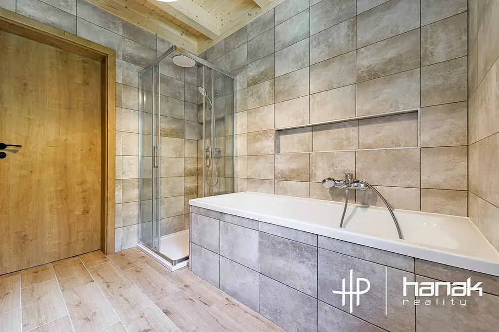 Chata je vystavěna z rakouského sušeného lepeného hranolu tl. 12 cm s dřevovláknitou izolací, která je naimpregnována prémiovou lazurou Adler Silverwood a postavena na zděné obvodové konstrukci.