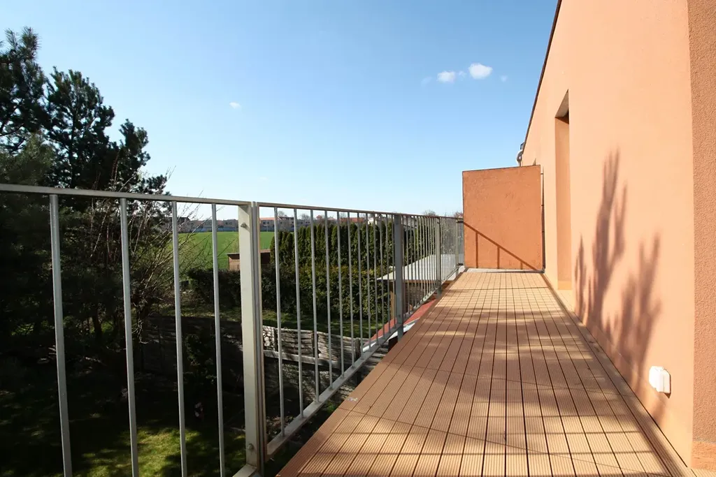 Nabízíme prostorný řadový dům, dispozičně řešen jako 4+1, se zahradou, zahradní terasou, terasou ve 2 NP domu s výhledem na zahradu a oplocenou předzahrádkou, v historické obci Jenštejn, 1 km od severovýchodní hranice Prahy. Vstup a vjezd k domu je samostatný, oddělen plotem, parkovací místa se nachází před domem na vlastním oploceném pozemku. Dům z r.2007 se skládá ze tří podlaží (dvě podlaží + podkroví), celková užitná plocha domu je 144,53m2. V 1. podlaží domu se nachází kuchyň (12 m2), prakticky propojena s obývacím pokojem (22 m2), z obývacího pokoje je vstup na zahradní terasu, do zahrady se vzrostlými stromy. Zahradní domek slouží skvěle jako úložný prostor. V 1. podlaží domu se nachází WC s umyvadlem. Do 2. podlaží vede pohodlné dřevěné schodiště, zde jsou dvě ložnice (17,5 a 16 m2) a koupelna s vanou a WC (přes 5 m2), s dostatkem denního světla, v koupelně je umístěný kombinovaný plynový kotel s integrovaným zásobníkem, který zajišťuje vytápění domu a ohřev vody. Z jedné z ložnic je vstup na terasu. Z terasy a zahrady, zahradní terasy je díky tomu, že se dům nachází na kraji obce, volný výhled. Příjemné podkroví je velké 40 m2, není problém zde dobudovat další koupelnu. Dům je napojen na veškeré inženýrské sítě (el., vodu, kanalizaci, plyn). V místě je velmi dobrá dopravní dostupnost (bus na Černý Most, Letňany), v obci se nachází pošta, škola, školka. Koupi domu lze financovat prostřednictvím hypotečního úběru, který rád vyřídí náš specialita. K dispozici ihned.