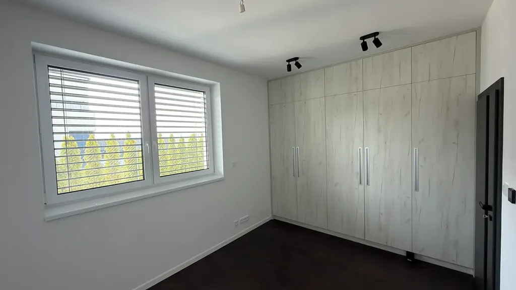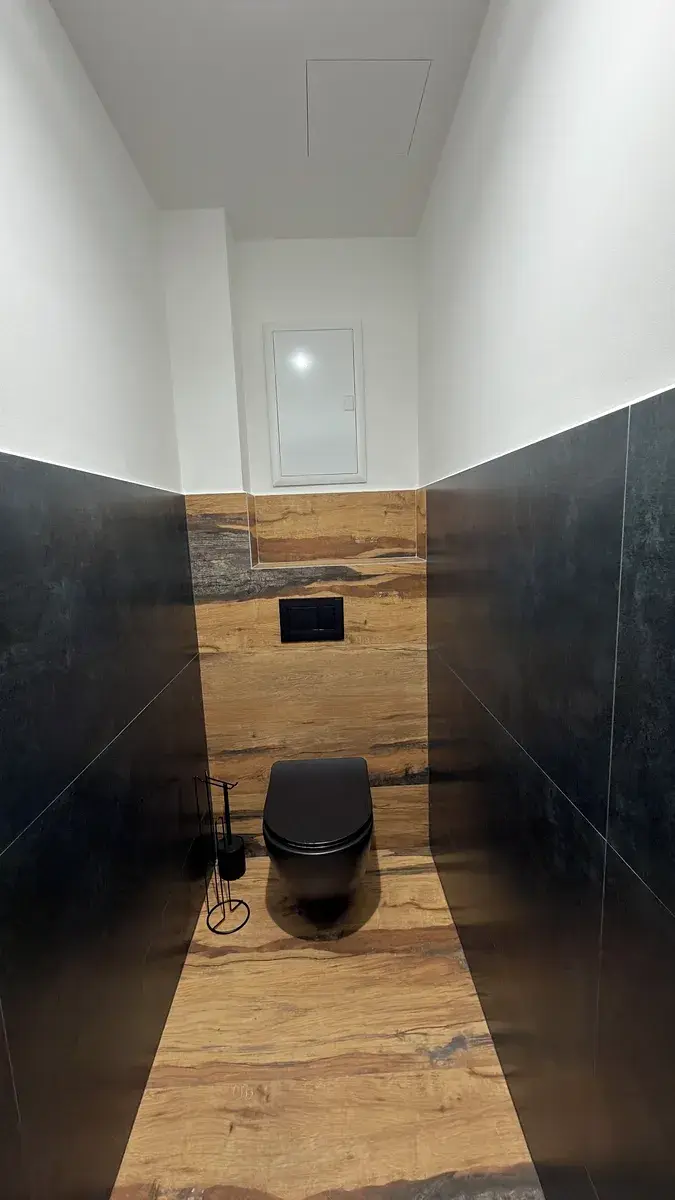 - Maximální komfort: Podlahové vytápění, designové osvětlení, koupelna s walk-in sprchou.