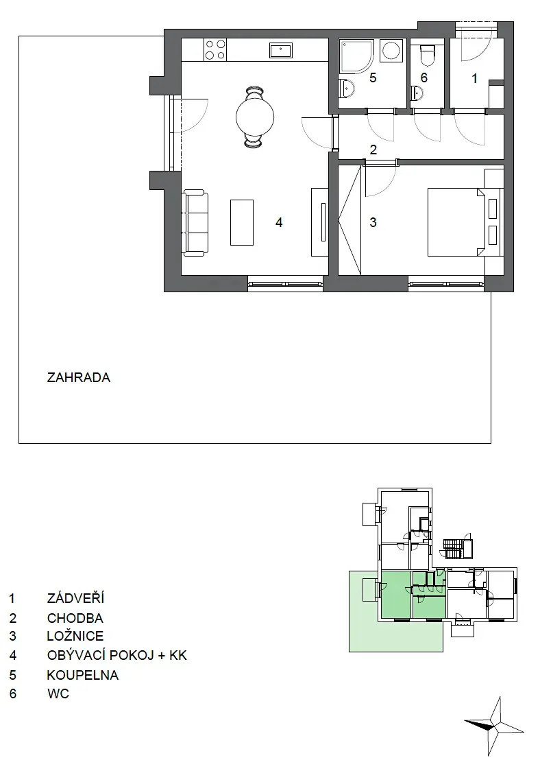 - Vlastní zahrada (75 m²): Přímý vstup z obývacího pokoje, soukromí, oploceno.