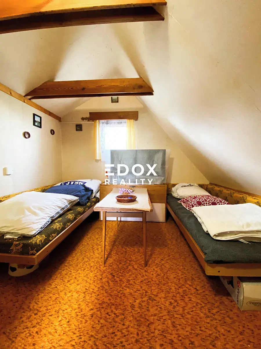 Zachovalá dvoupodlažní chatka s dílnou a vzrostlou zahradou, napojená na obecní vodovod (sezónní provoz cca od dubna do října), elektřinu a vlastní kanalizační jímku.