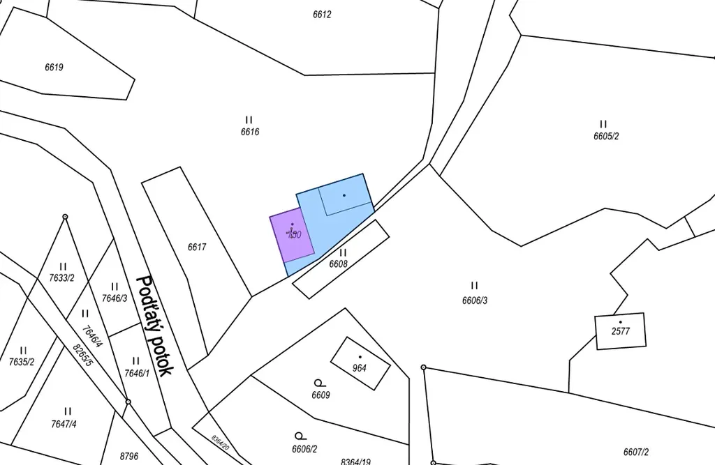 Podíl povinného: 1/1 -parc.č. 750 zastavěná plocha a nádvoří o výměře 306 m2, součástí je stavba č.p. 192, rod.dům. -parc.č. 6616 trvalý travní porost o výměře 3082 m2 Jedná se o pozemek parc. č. St. 750 (zastavěná plocha a nádvoří) o výměře 306 m2. Na pozemku v současné době nestojí žádná stavba rodinného domu. Pozemek parc. č. 6616 (trvalý travní porost) o celkové výměře 3 082 m2 je v územním plánu obce z části vedený jako plochy smíšené obytné (cca 1 440 m2) a z části vedený jako plochy zemědělské (cca 1 642 m2). Na části pozemku parc. č. 6616 stojí dřevěná chata se sedlovou střechou, která není evidována v KN. Celková plocha pozemků je 3 388 m2. Pozemky jsou rovinaté až mírně svažité a travnaté. Dostupné inženýrské sítě jsou v dosahu.