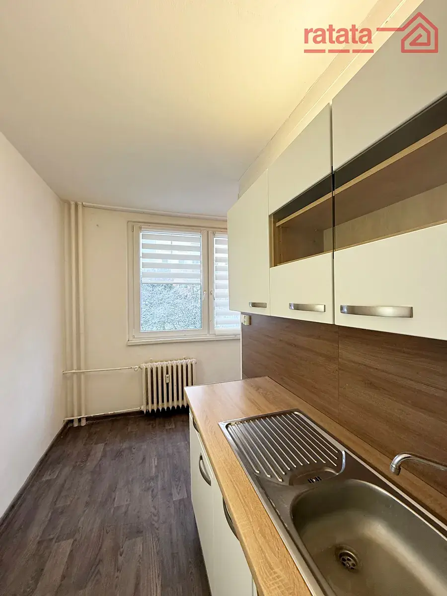 Je to čistý a slunný byt. Je zde kuchyňská linka, plynový sporák, vana, umyvadlo a WC. Na podlahách je položeno lino. Byt je volný k nastěhování IHNED.