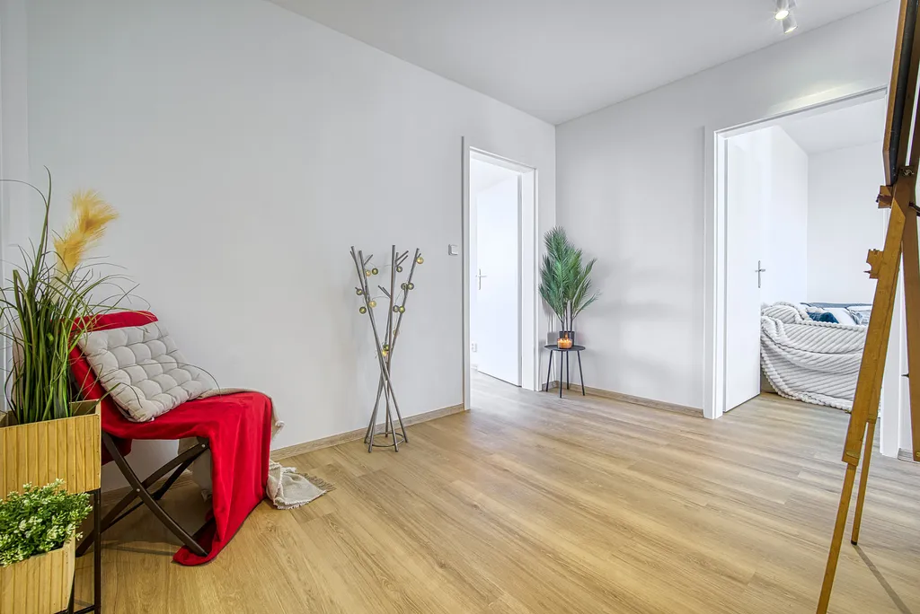 Byt se pronajímá nezařízený (s výjimkou kuchyňské linky s výše uvedeným spotřebiči, vany, umyvadla, toalety), což umožňuje nájemci přizpůsobit interiér vlastním potřebám.