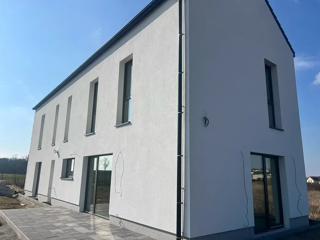 Cena domu zahrnuje standardní provedení: dřevěné podlahy, interiérové dveře, sanitu, kotel, teplovodní podlahové vytápění, regulaci topení, rekuperaci, oplocení a vstupní bránu.