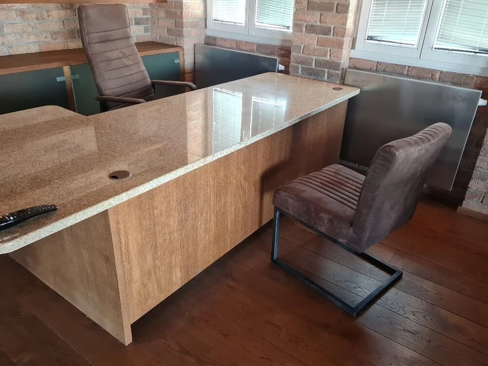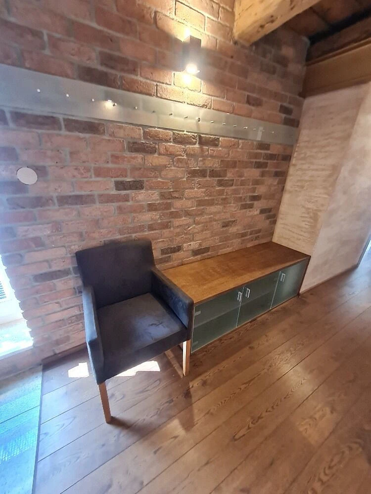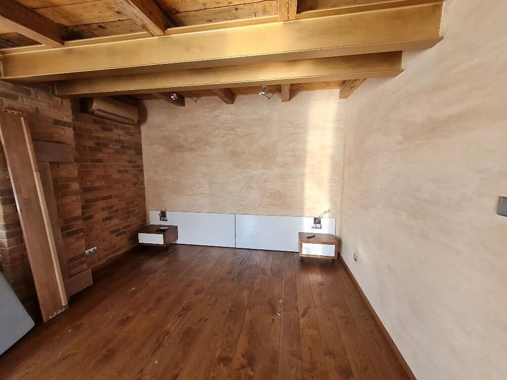 Je částečně vybaven, v obývacím pokoji je k dispozici velký kamenný pracovní stůl s židlí, stolek pod TV a TV, plně vybavená kuchyň se spotřebiči.
