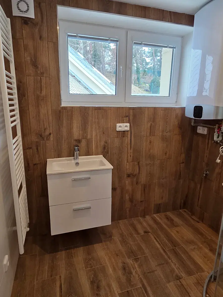 Nabízíme k prodeji krásný prostorný byt 4+1 po rekonstrukci ve kterém ještě nikdo nebydlel, v bytovém domě o 16 b.j.situovaný v centru Starých Splavů (část města Doksy) 100 m od Máchova jezera. Tento jednopodlažní byt se nachází ve třetím podlaží a byl nedávno kompletně zrekonstruován. Byt je zrekolaudovan v roce 2023 a nabízí moderní a komfortní bydlení s celkovou užitnou plochou 107 m². Byt je v osobním vlastnictví a zahrnuje také praktickou komoru o ploše 6 m² umístěnou v 1.nadzemním podlaží (přízemí) bytového domu. Bytová jednotka sestává z prostorné předsíně, kde je umístěn elektrokotel, s vchodem do pokoje č.1 a pokoje č.2 a dále pak do obývacího pokoje a kuchyně. Do pokoje číslo 3 je vstup z pokoje č.2. Vstup do koupelny a WC je z kuchyně. Kuchyň je vybavena kvalitní kuchyňskou linkou německé výroby se značkovými spotřebiči. Podlahy jsou vinylové, dveře a zárubně dřevěnné prosklené. Osvětlení bodové. Byt je nádherně prosvětlený se sluncem po celý den (byt je rohový). Byt je vytápěn elektrokotlem, ohřev teplé vody moderním bojlerem umístěným v koupelně. Okna jsou osazeny žaluziemi.