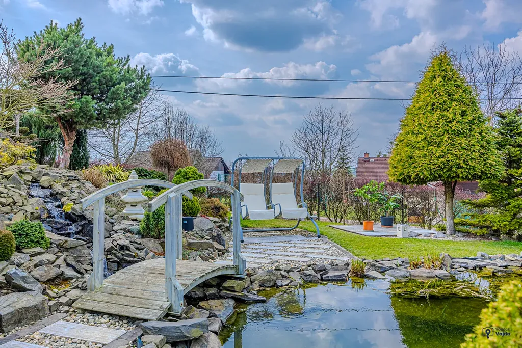 Dominantou nemovitosti je pečlivě udržovaná, vzrostlá zahrada, která vytváří příjemné a klidné prostředí pro relaxaci i rodinný život. Součástí zahrady je okrasné jezírko a bazén, ideální pro letní osvěžení.